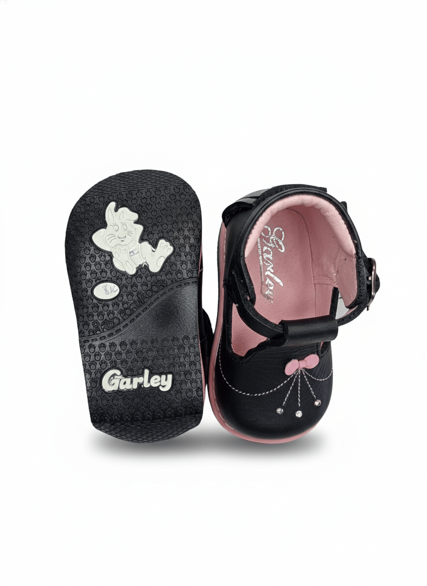 Dale a tu pequeña el toque final perfecto para cualquier ocasión especial con estos sofisticados zapatos. Con un diseño atemporal que combina la sobriedad del negro con la ternura del rosa, este calzado no solo es hermoso a la vista, sino que está construido bajo estándares de salud podológica infantil.